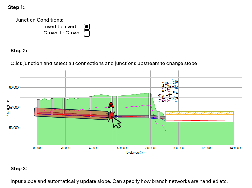 This feature can include choosing invert-invert or crown-crown conditions and how to handle branch networks.